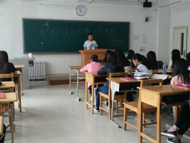 为响应校园文明修身形象大使活动,14级文秘班于2016年5月9日开展文明修身主题班会,14级文秘班全体员工及班主任参加本次活动。