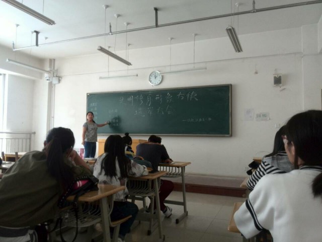 13级汉语言一班全体员工在2016年5月9日于三号楼506教室举行了文明修身形象大使选举主题班会。