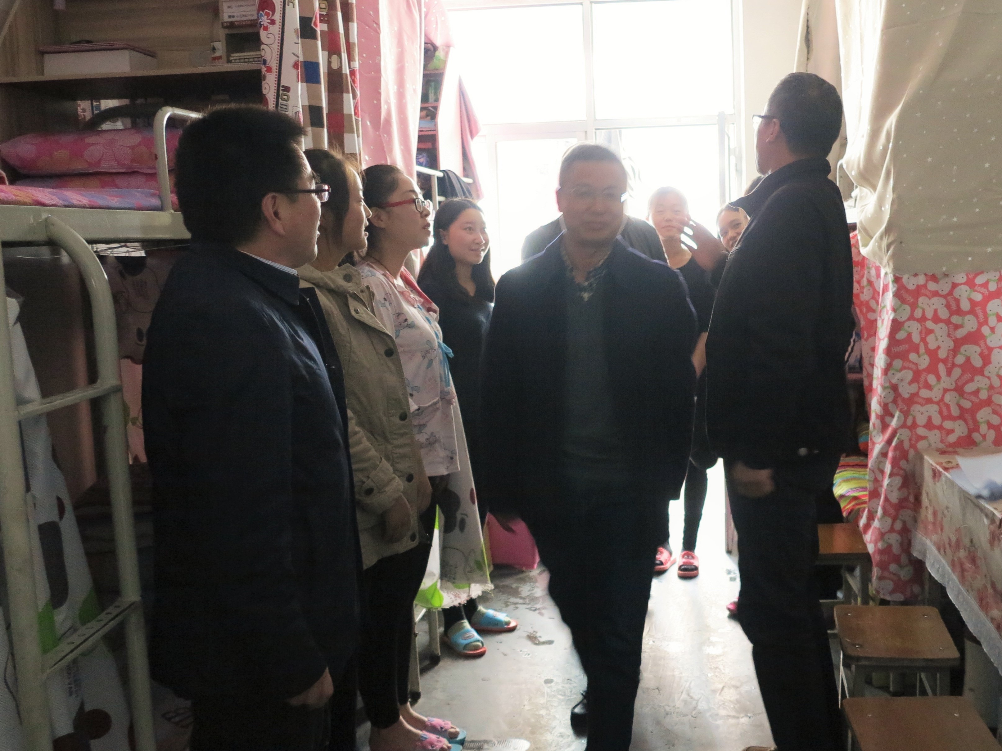 检查走访过程中,王克太副董事长与同学们亲切交谈,仔细询问同学们在学习、生活中遇到的困难,倾听同学们就宿舍安全、食品安全、环境卫生等问题的意见和建议。王克太副董事长告诫同学们,老员工活要以学习为主,要把学习放在首位,努力适应老员工活,在日常生活中要提高安全防范意识,注意宿舍用电等安全,不用违规劣质电器,注意食品卫生。