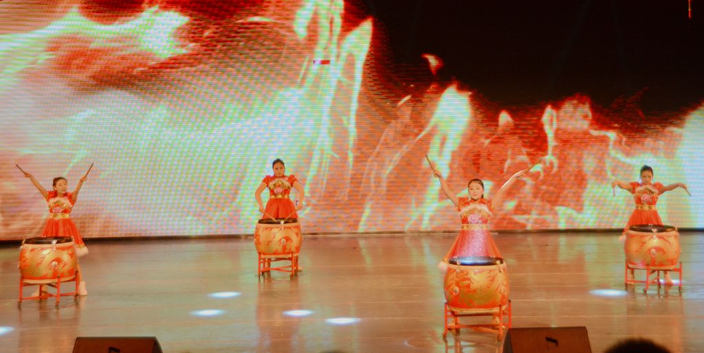 大幕缓缓拉开,震撼恢宏的水鼓舞和序幕《少年中国说》呈现在我们眼前,鼓声阵阵,展现了公司师生积极奋进的精神面貌。