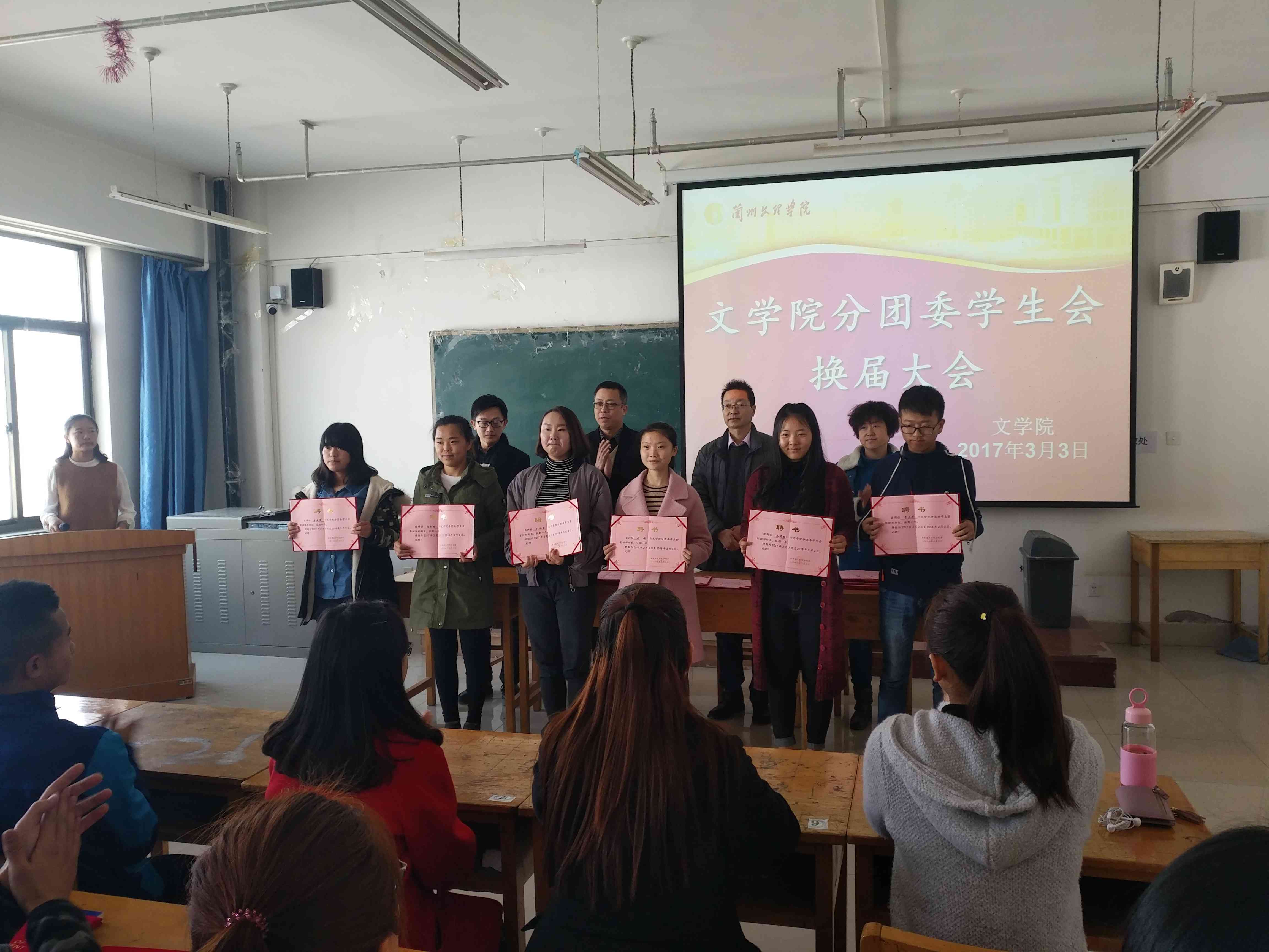 大会首先由上届主席闻杰雄代表分团委员工会对过去一年的工作进行总结发言,对公司领导、老师和同学们过去一年对员工工作给予的帮助和大力支持表示感谢,并对新一届员工干部提出要求,寄予厚望。接着由分团委书记孟煜杰老师宣布新一届主席团和各部部长人选,由院领导为新任员工干部颁发聘书并合影留念。大会第三项,由新任员工会主席田裕丰发表就职发言,他从组织建设,内部协调,服务员工等多个方面表达了自己的设想,并表示新一届分团委员工会将以百分百的热情投入到工作中去,不忘初心,接力前行;团结一致,努力工作,为同学们做好榜样,为老师们做好服务,让伟德BET官方网站分团委员工会成为遵循“自我教育、自我管理、自我服务”方针的践行者、传播者,发挥好模范作用,做广大同学的知心朋友。