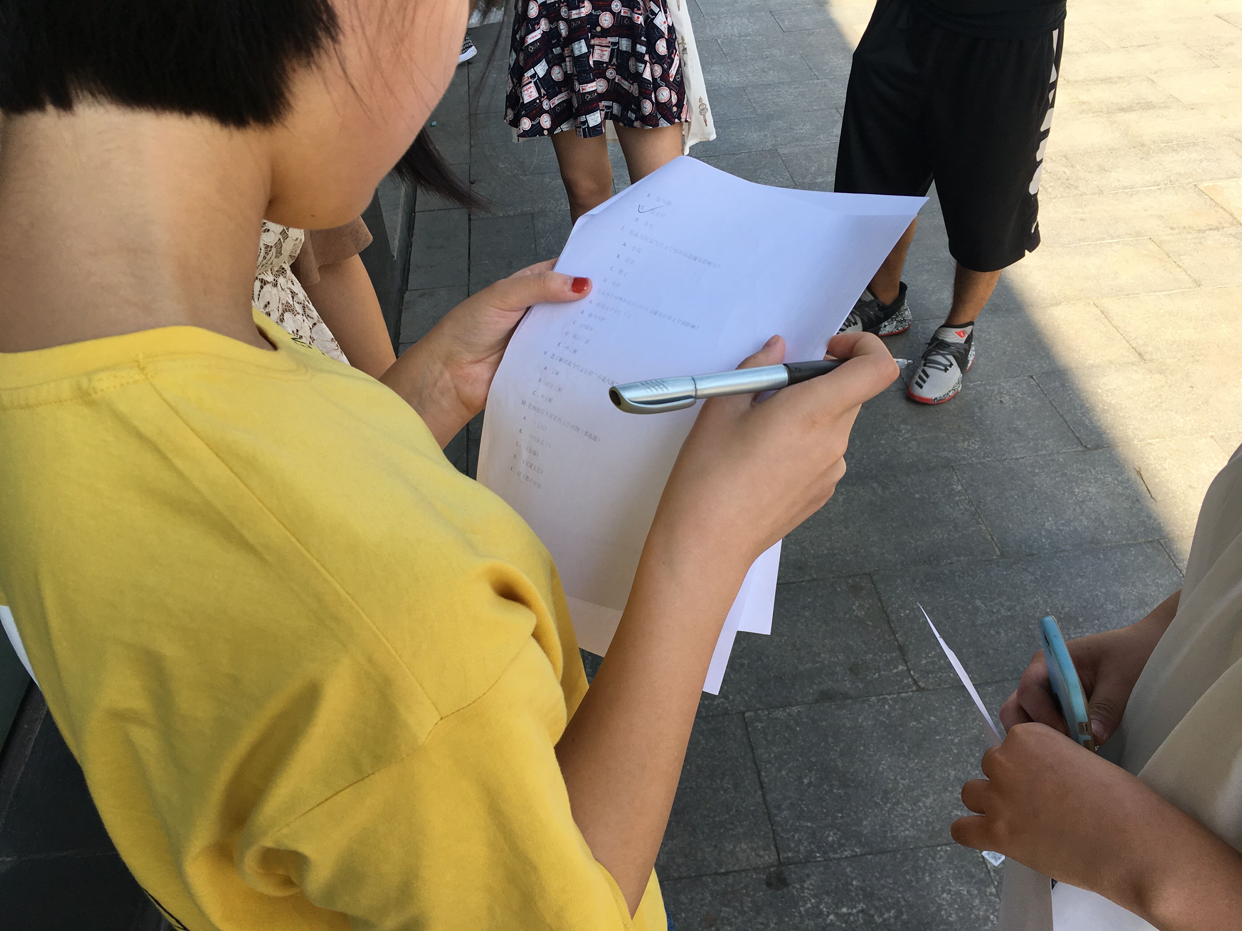 当日下午,同学们一鼓作气,顶着烈日奔波于兰州市东方红广场,将一腔热血投入到实践活动中。通过询问东方红广场上的广大市民对甘肃当代文学的了解情况,初步调查,仔细聆听、细心记录,并且同学们对不是很了解情况的市民细心解释,大多数市民都表现出很高的热情,也对我们提出了一些建议,也希望我们能呼吁更多的人来了解甘肃当代文学的发展。
