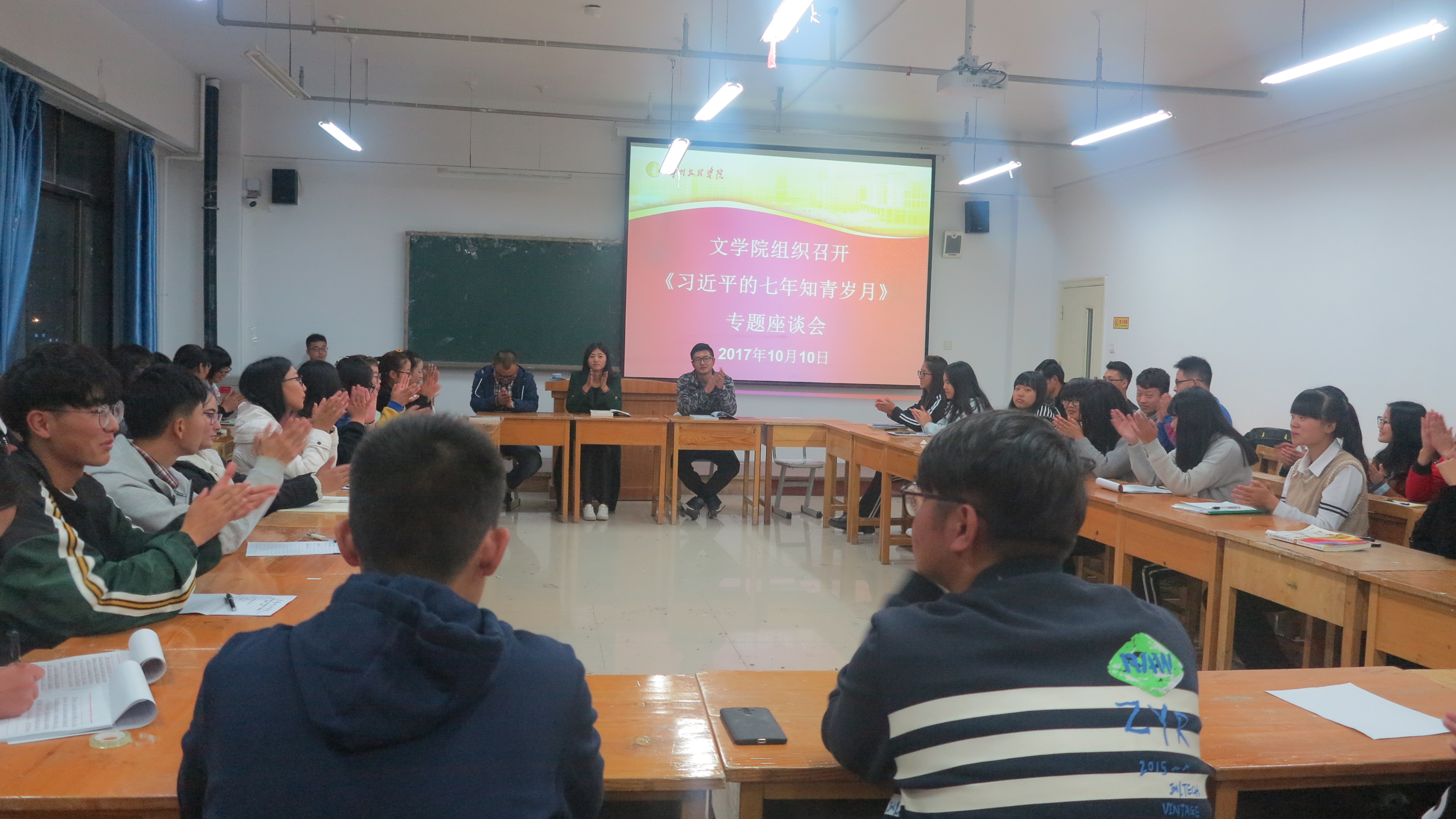 最后,分团委副书记刘月明同学代表分团委做了总结发言,要求分团委、员工会及各班团支部要将学习《习近平的七年知青岁月》主题活动与“一学一做”主题教育活动结合起来,引导广大共青团员树立牢固的政治意识、大局意识、核心意识和看齐意识,更加自觉地在思想上、政治上、行动上同以习近平同志为核心的党中央保持高度一致,永远听党话、跟党走,以良好的精神风貌迎接党的十九大的胜利召开。