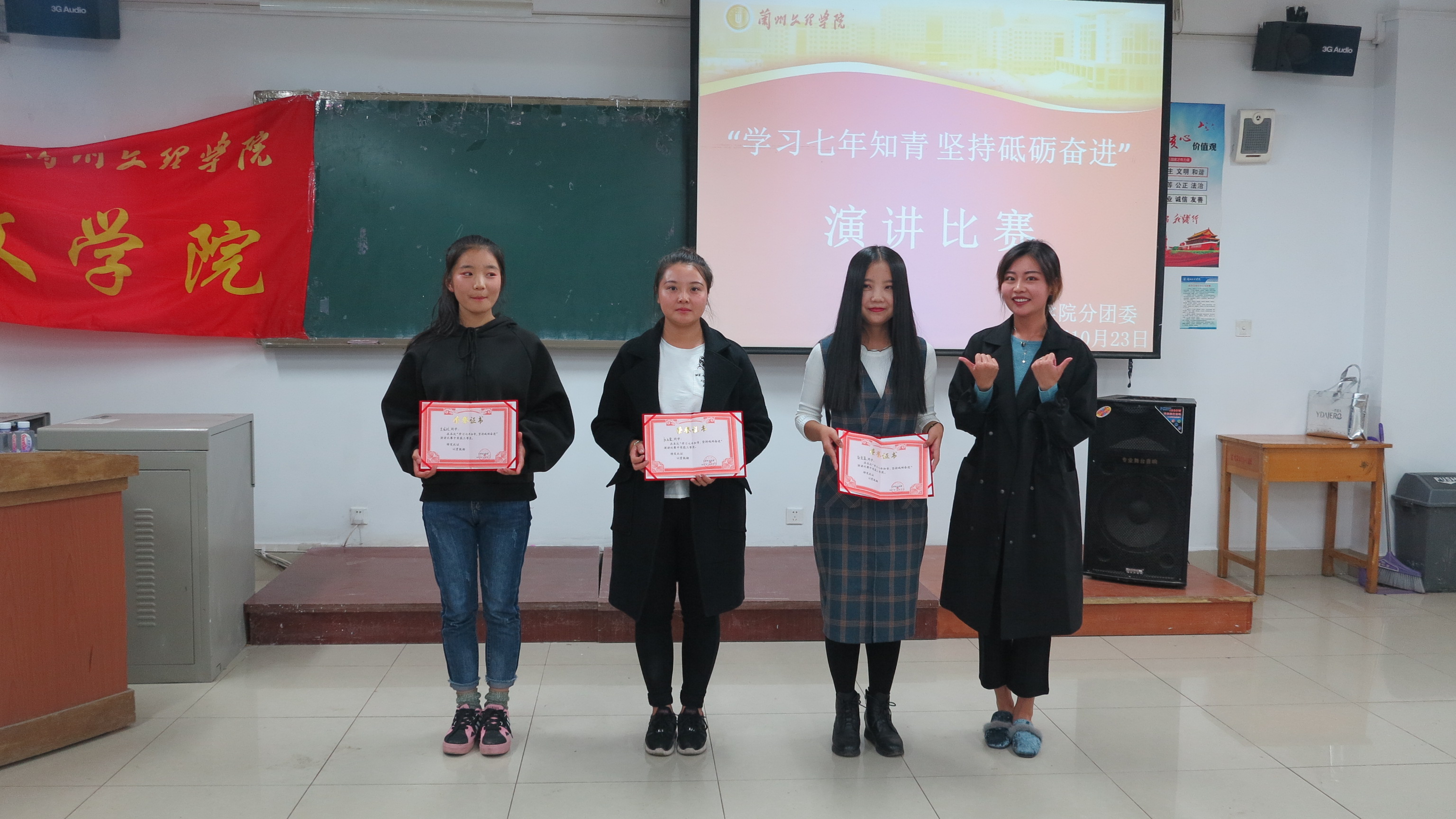 为贯彻落实校团委《关于在全校共青团组织中深入开展<习近平的七年知青岁月>学习活动的通知》的文件精神,推动 “一学一做”学习教育常态化、制度化,引导广大团干部、团员青年牢固树立政治意识、大局意识、核心意识、看齐意识和志存高远、脚踏实地、勇于创新、锐意进取的人生观、价值观、世界观,2017年10月23日19时30分,伟德BET官方网站分团委在1号楼504教室举办了学习《习近平的七年知青岁月》主题演讲比赛,16名参赛选手及各班近100名同学参加了此次活动,活动由分团委组织部部长马思静主持。