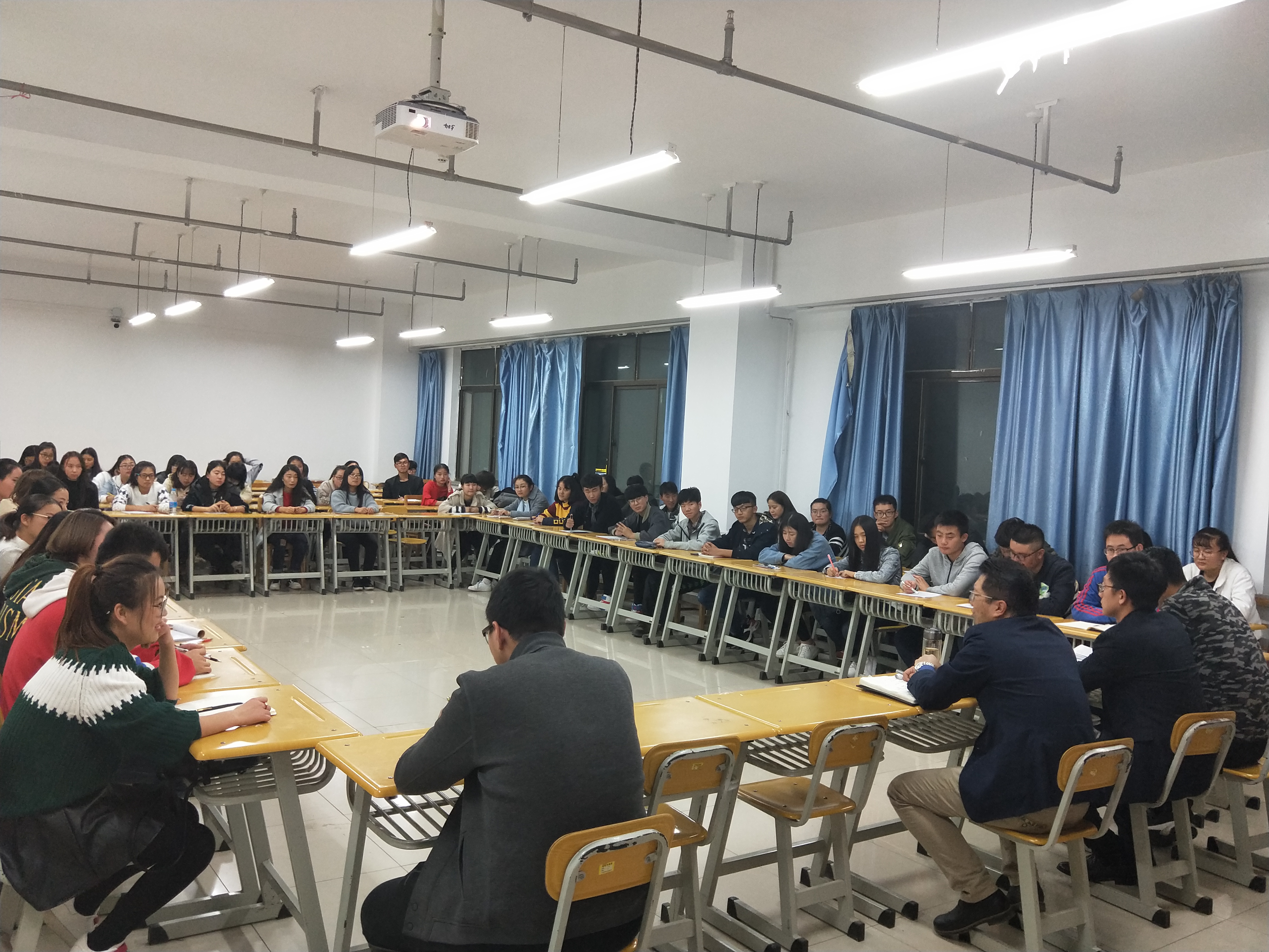 11月1日晚7点,校团委书记孙亮到伟德BET官方网站分团委开展“一学一做”教育实践主题调研暨“1+100”团干部直接联系青年工作,伟德BET官方网站分团委副书记孟煜杰、伟德BET官方网站全体员工会干部及17级各班班委70余人在1—504教室参加了此次活动。