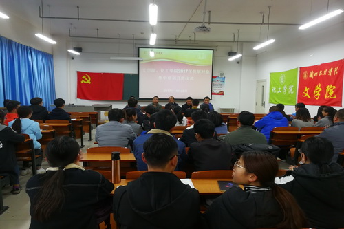 化工公司张兴辉副书记传达了关于举办2017年入党发展对象培训班的具体安排和要求。他指出,此次培训班重点围绕党的十九大精神、习近平新时代中国特色社会主义思想、中国共产党章程、党风廉政教育等专题,采取集中授课、集中研讨、观看纪录片、自学、红色基地参观学习及撰写心得体会等多种形式,对学员开展为期七天的集中培训。