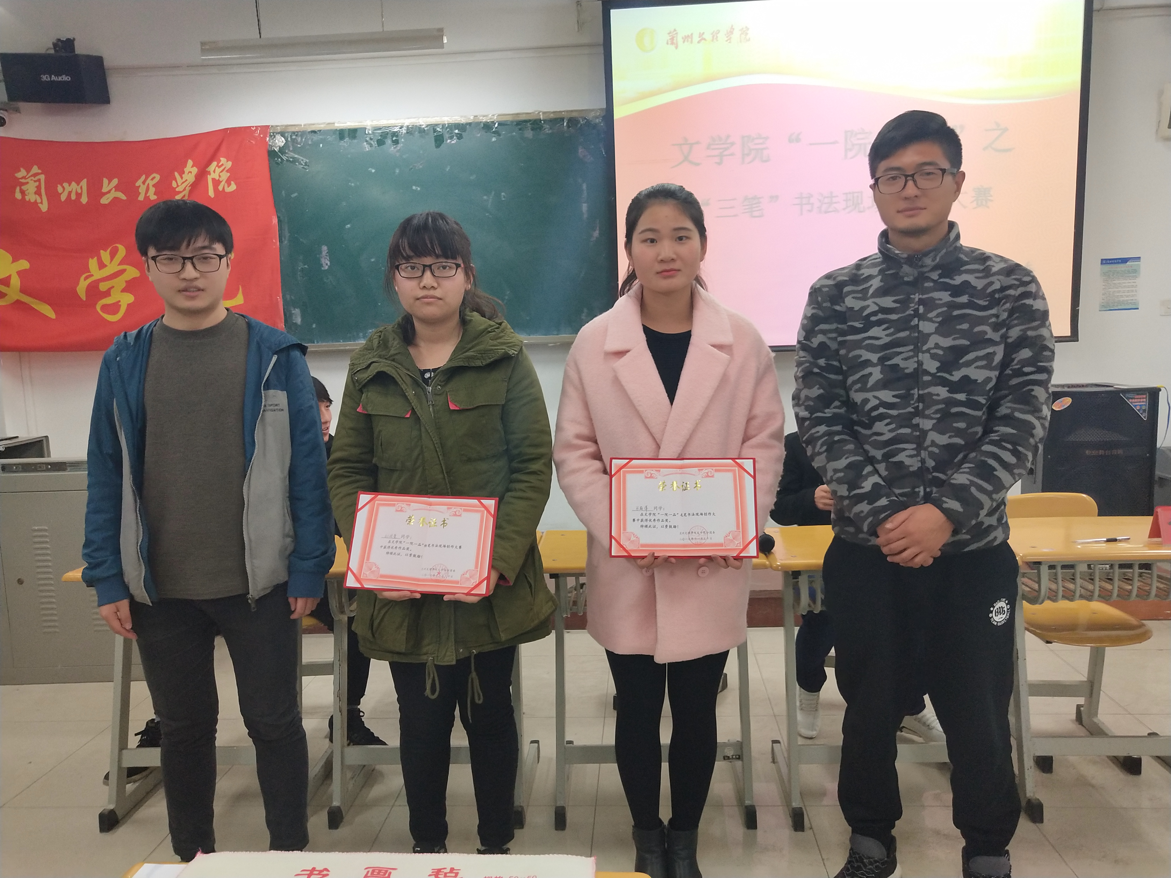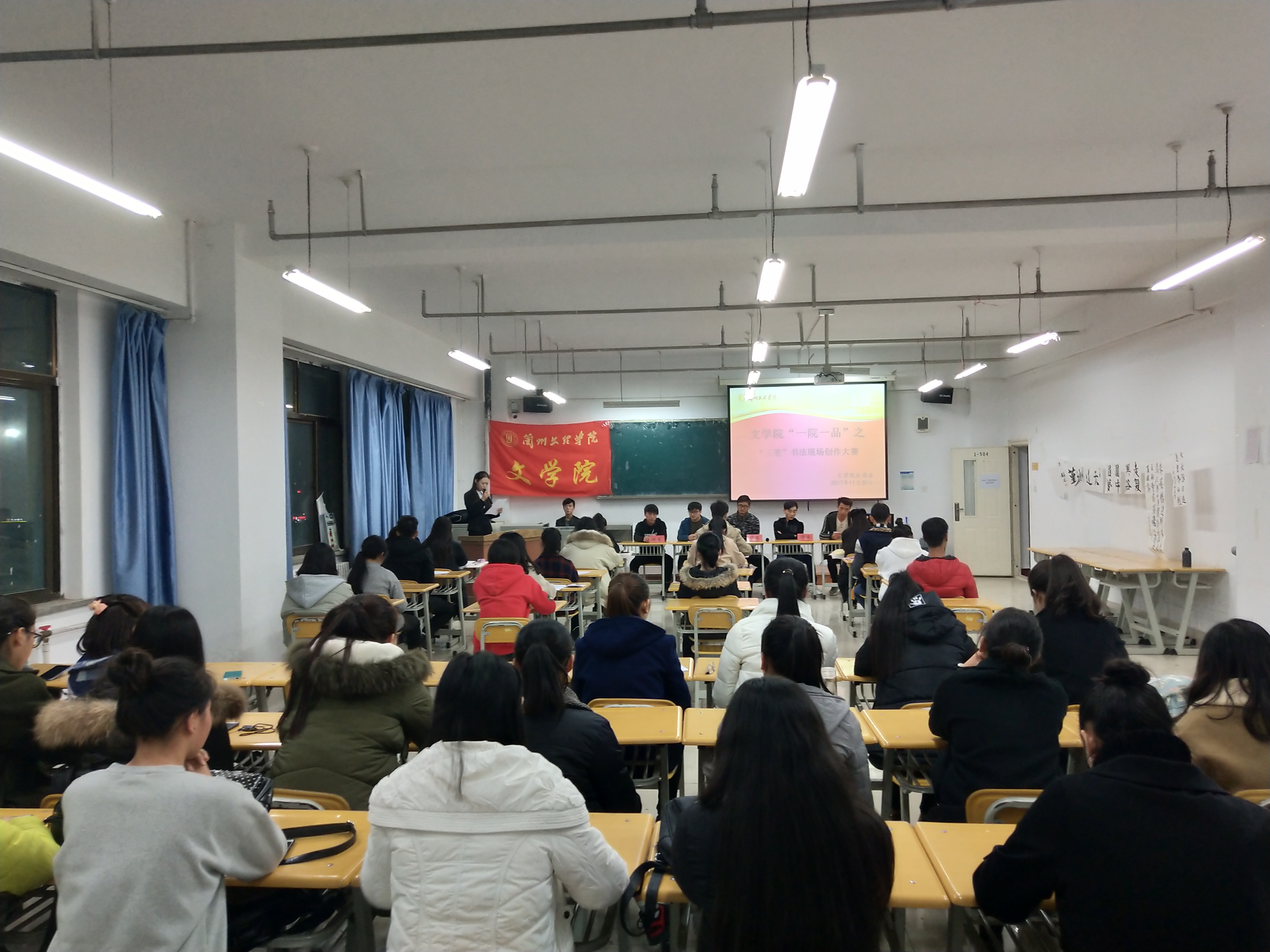 随着时代的发展、社会的进步,手机、电脑等智能产品不断普及和创新,人们普遍使用电子产品打字,书法越来越不被重视,提笔忘字现象也时有发生。为了提高老员工基本书写技能,展示老员工的风采,激发老员工对书法创作的热情,1130日晚7点,伟德BET官方网站分团委在1号教学楼504教室举办2017年“一院一品”暨甘肃古诗词“三字”大赛。