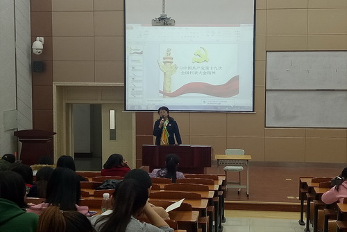 课程第二部分由郭萍老师为大家讲解,郭老师把课程分为十九大的政治成果,世界意义和核心内容三个部分进行解读。郭老师还为大家介绍了中共十九大的基本情况和主要议程,并详细解读了习近平总书记代表第十八届中央委员会在十九大上所作的报告,报告共分为十三个部分。最后,老师着重提出了习总书记对于青年的期许,青年兴则国家兴,青年强则国家强,当代青年应该成为新时代的弄潮儿。讲解结束后,老师给同学们留下了思考作业:学习十九大精神,坚定信念做时代先锋,帮助大家更好的理解和巩固。
