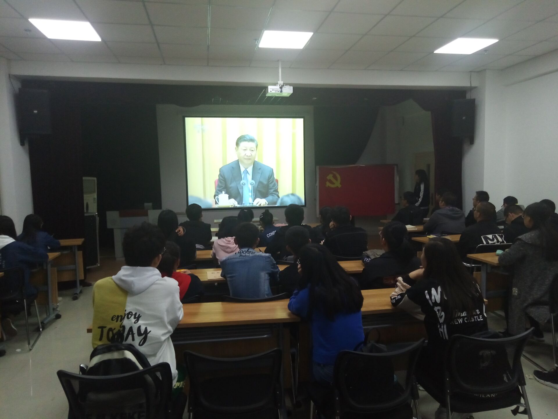 陆润发言说,习近平总书记的重要讲话极大地鼓舞了我们,作为新时代老员工应树立共产主义远大理想和中国特色社会主义共同理想,增强“四个自信”,肩负时代重任,讲好中国故事,主动引领正确的校园舆论导向,是当代老员工义不容辞的责任和义务。贾子骞同学结合自己暑期支教经历做了发言,他说教育是社会发展进步的基石,通过学习深刻体会到党中央对教育工作的高度重视,作为一名员工党员,要树立远大理想,坚定跟党走的决心和毅力,勇于肩负新时代党和国家赋予的新的历史使命。