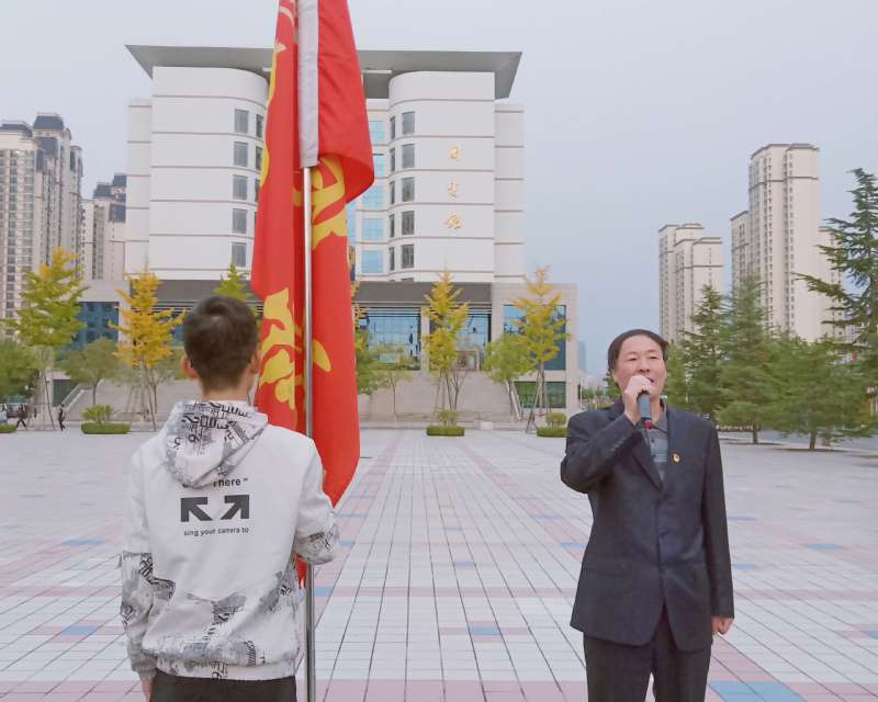面对飘扬的国旗,公司党总支书记郑建勤作了简短的爱国主义教育讲话,对2019级新生提出殷切希望与要求,郑建勤书记强调:作为当代青年老员工要不忘初心,牢记使命,以严格标准要求自己,用实际行动诠释爱国情怀。他要求同学们从自身做起,注重文明行为,勤奋学习,以实际行动积极推进公司合格本科评估工作。