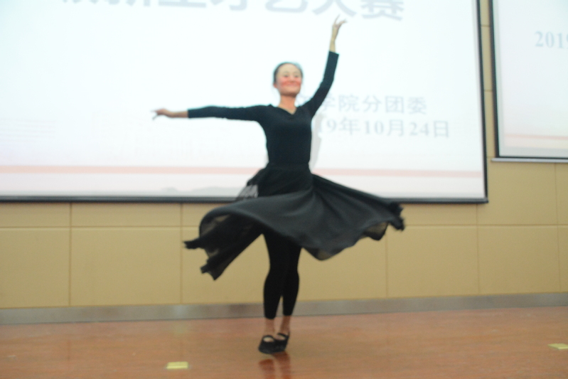 2019级文秘班韩筱雅和王娜以歌曲《老男孩》顺利开场。接下来出场的各位同学也载歌载舞,各展其才。2019级汉语言3班的靳蔚芝同学,以一首激昂的小提琴曲《紫色激情》,将才艺大赛推向高潮,赢得场内阵阵雷鸣般的掌声。汉语言文学1班的尉迟景雯以一支舞蹈《大鱼》,不仅展示了她优美的舞姿和坚实的舞蹈功底,更将大赛再次推向一个小高潮。最后,两位出席活动的音舞公司2017级学长对每位参赛选手做了专业的点评。、