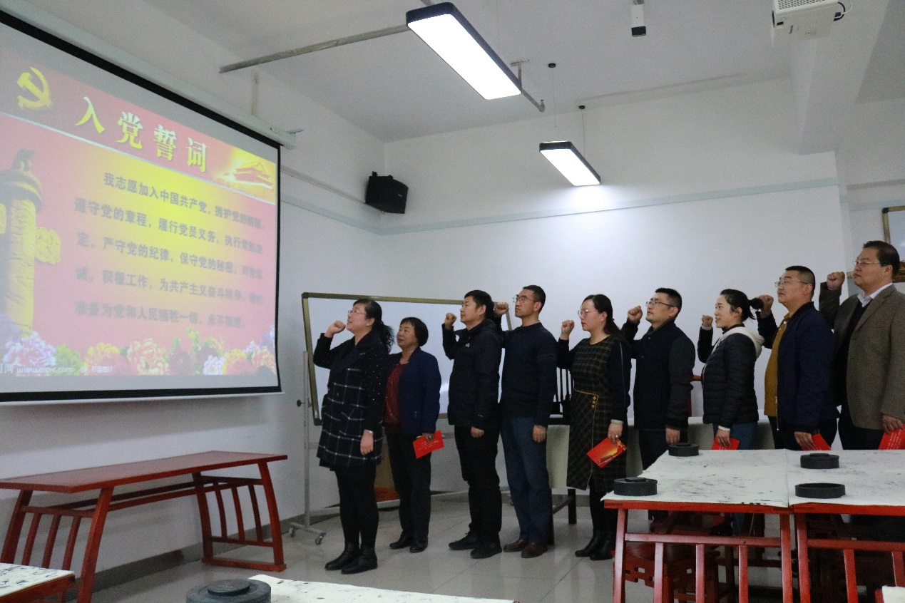为迎接中国共产党建党100周年,增强全体党员的责任感和使命感,提升组织的凝聚力、向心力和战斗力,2020年11月26日,公司教工第一党支部、教工第二党支部在公司书法教室组织开展了“重温入党誓词,牢记初心使命”主题党日活动。