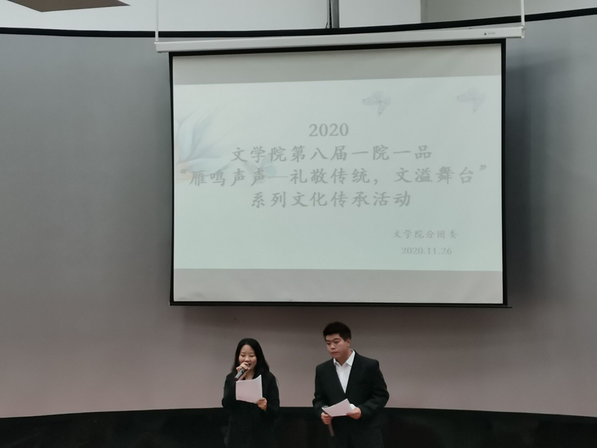 2020年11月27日,伟德BET官方网站开展第八届一院一品“雁鸣声声——经典咏流传”系列文化传承活动之三“礼敬传统,文溢舞台”话剧大赛。