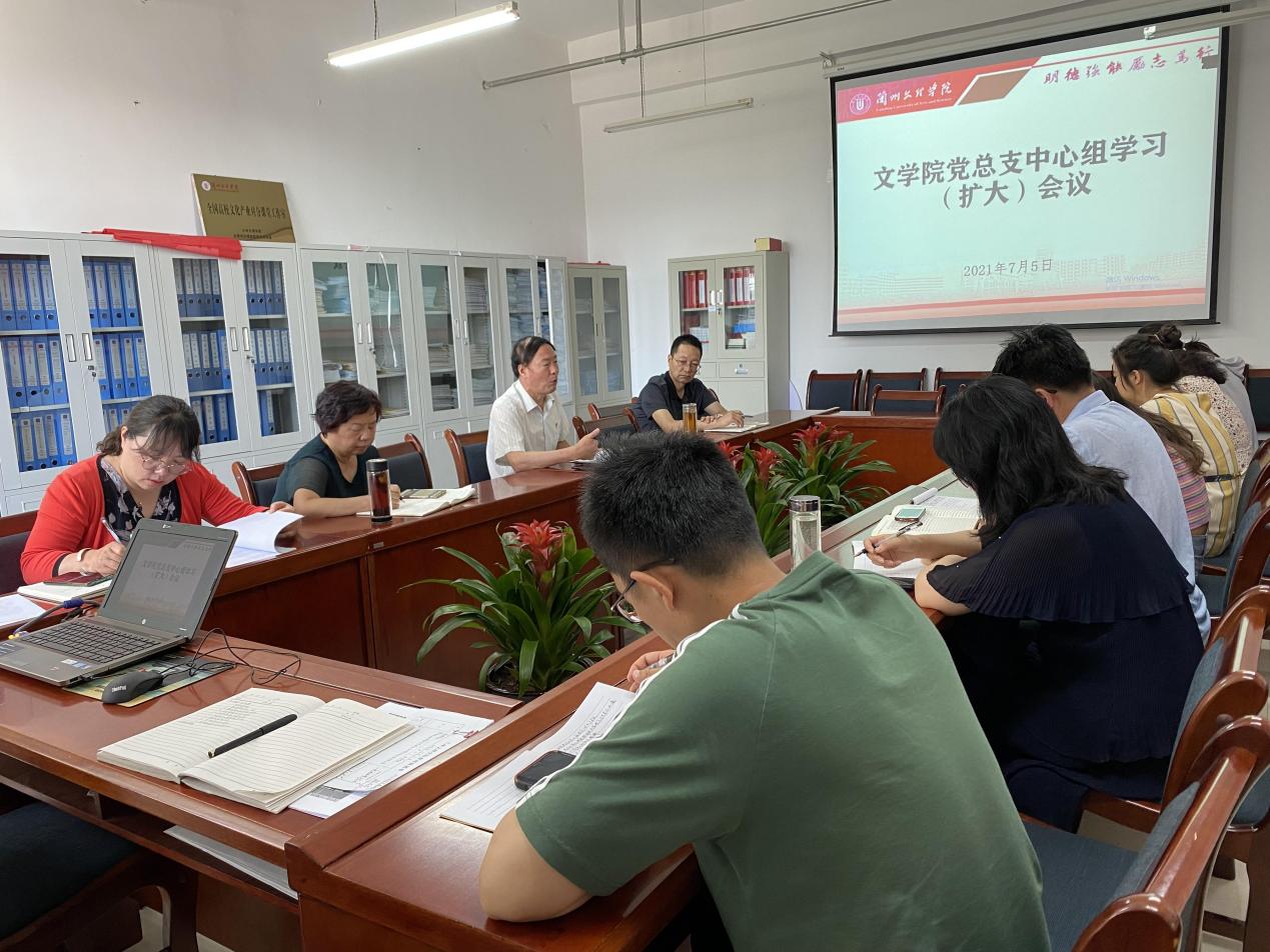 2021年7月5日上午,公司党总支召开学习中心组扩大学习会,专题学习习近平总书记在庆祝中国共产党成立100周年大会上的重要讲话精神,党总支委员、支部书记(副书记)、学工办主任(分团委书记)、组织员、辅导员参加,学习会由党总支书记郑建勤主持。