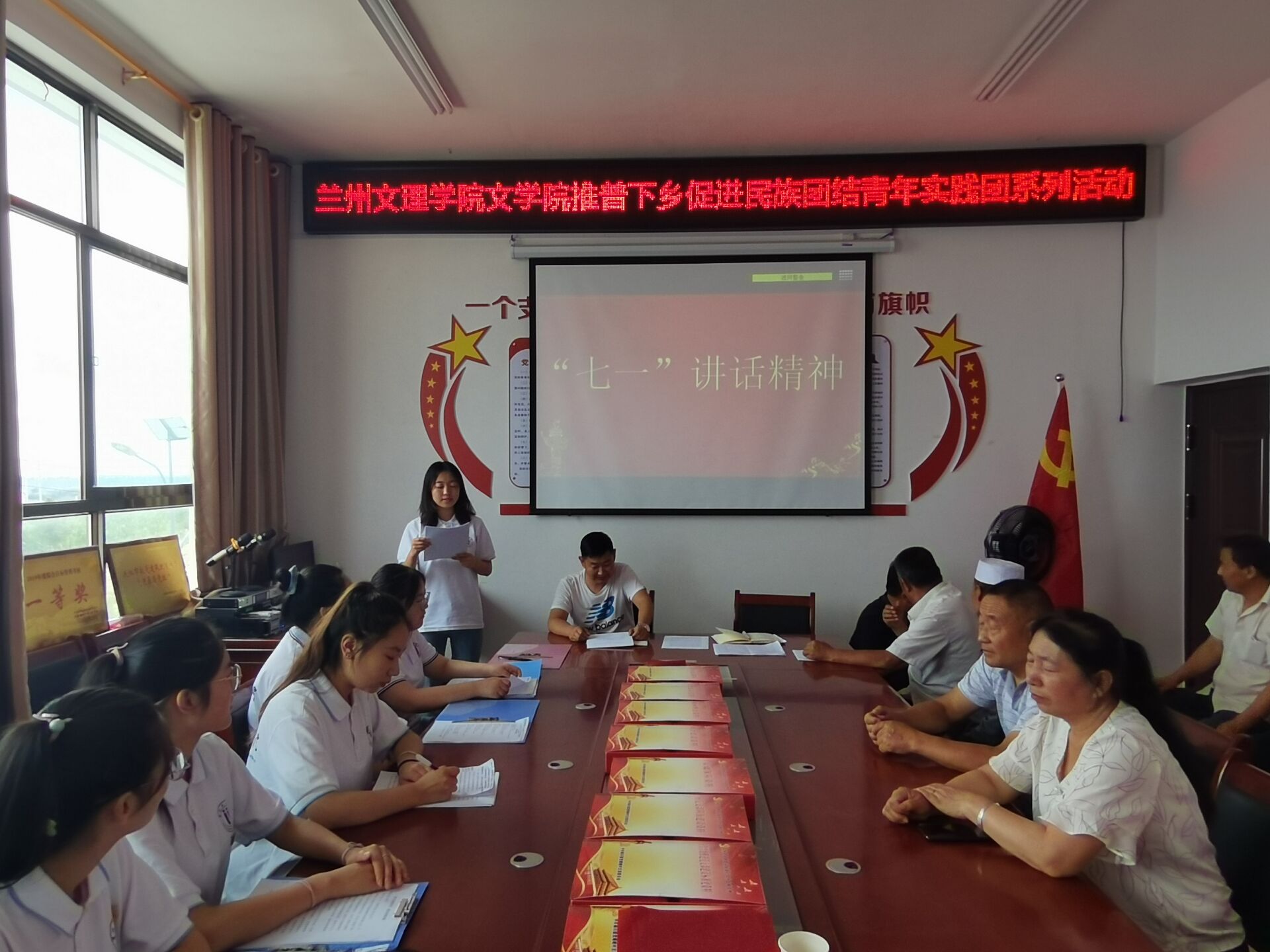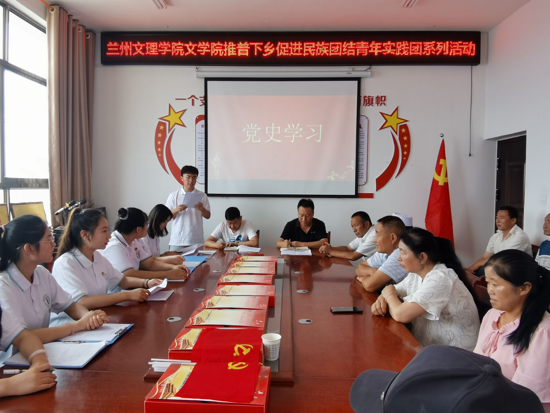 为学习宣传贯彻习近平总书记“七一”重要讲话精神,引导青年员工在社会实践中学党史、办实事,助力乡村振兴,7月19日,BET伟德官方网站“推普下乡促进民族团结”青年实践团来到了公司帮扶的庆阳市庆城县桐川镇党崾岘村,在公司驻村干部俞兴龙老师的带领下,在党崾岘村党支部开展“民族团结一家亲”政策宣讲、习近平总书记“七一”重要讲话精神分享学习等活动。