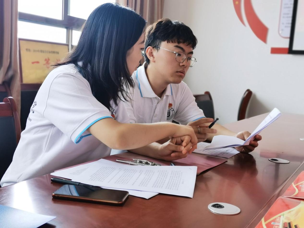 做好准备,有条不紊。为了确保活动能够有序进行,一大早,实践团就到达了党崾岘村党支部进行了紧张的筹备工作。集团驻庆城县桐川镇党崾岘村第一书记兼工作队队长俞兴龙老师在看了队员们对这次活动所准备的材料后,提出了需要结合当地实际进行活动准备的修改意见,并引导队员们进行思考。队员们意识到,在宣讲活动中,应该将对象确定为当地群众,以通俗的方法进行宣讲,避免不切合实际的空中楼阁。