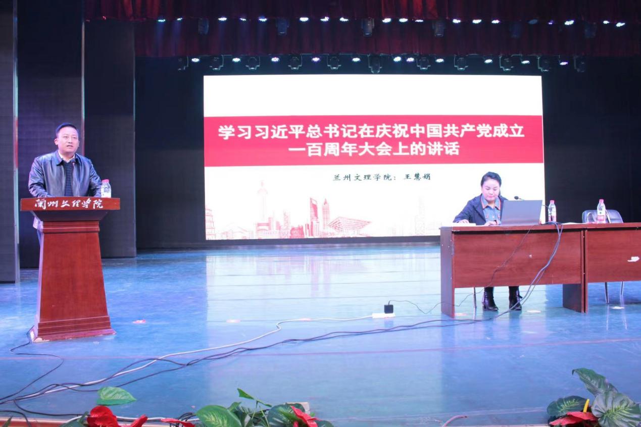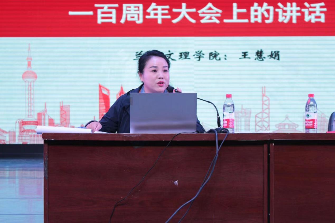 10月19日下午,伟德BET官方网站与新闻传播公司在实验剧场举行学习习近平总书记“七一”重要讲话精神宣讲会,马克思主义公司教师王慧娟博士作了题为“学习习近平总书记在庆祝中国共产党成立一百周年大会上的讲话”宣讲报告。伟德BET官方网站和新闻传播公司教师和员工代表参加报告会。宣讲会由新闻传播公司副经理李军主持。