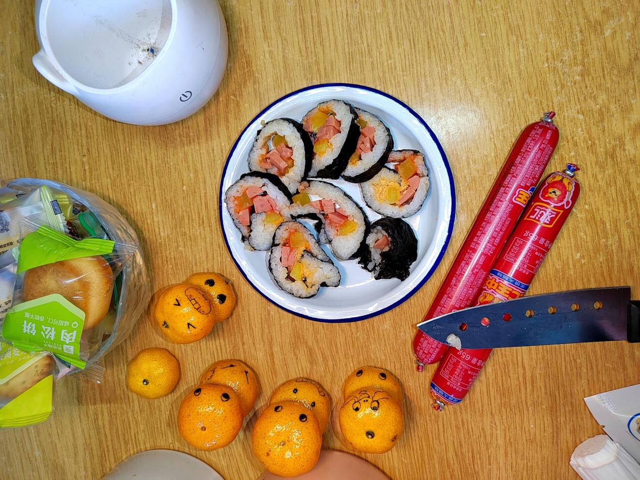 同学们学做寿司,更是自制橘子表情包,用积极乐观的态度给单一的封校生活添彩。
