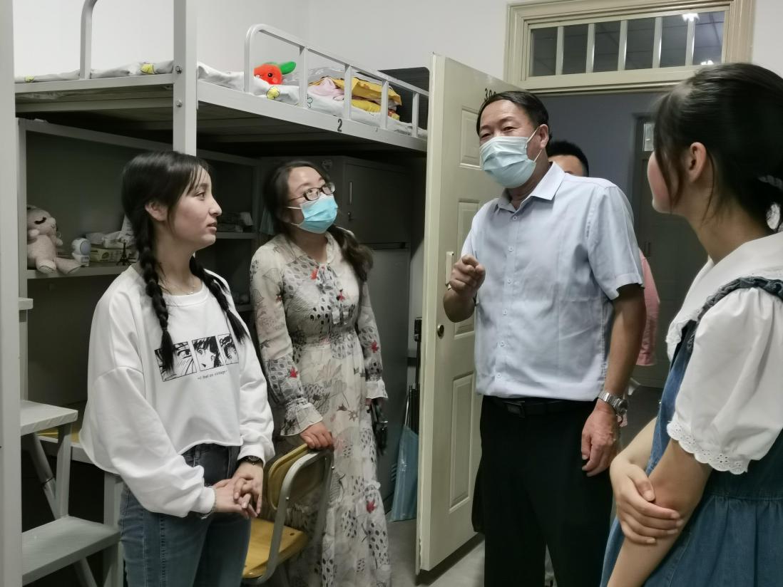 8月26日晚,公司党总支书记郑建勤、副经理金生翠、辅导员贾娜深入新生宿舍,关心看望新生入住情况。