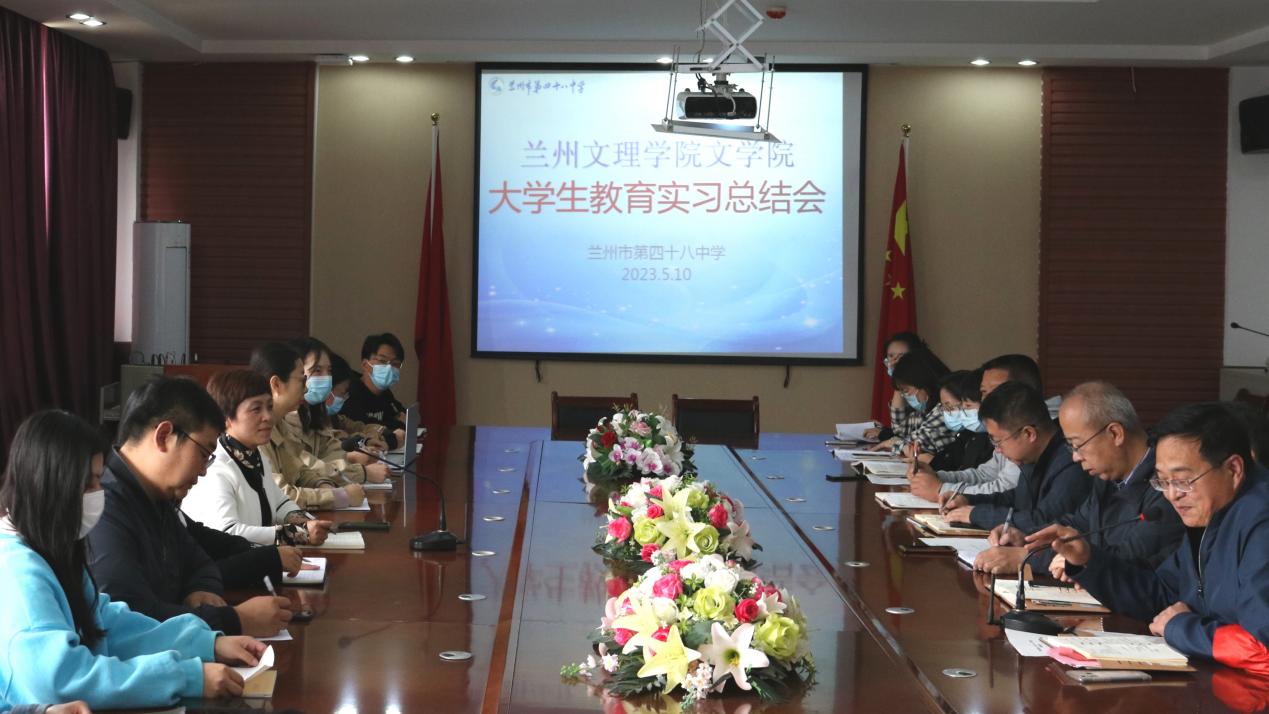 5月10日下午,伟德BET官方网站副经理金生翠、科研办主任贾馥瑞、指导老师王晓斌、辅导员张添发与兰州市第四十八中学副董事长隋子厚、副董事长李彦彬、教学督导部张智多主任、教师发展部巨正栋主任、员工成长部邓奇德主任、实习指导教师、10名实习生参加教育实习总结大会。四十八中学党建政治部赵玉洪主任主持会议。