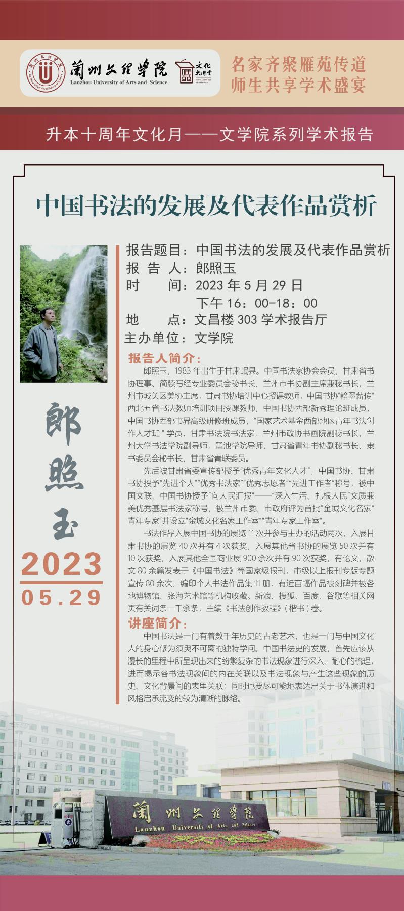 郎照玉学术报告海报-中国书法的发展及代表作品赏析