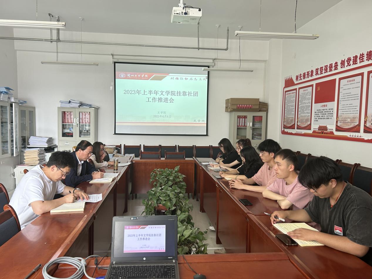 6月6日下午,在公司会议室召开本学期挂靠社团工作推进会,党总支书记郑建勤、辅导员贾娜以及书法协会等6个挂靠社团的负责人参加了会议,会议由团学办主任孟煜杰主持。