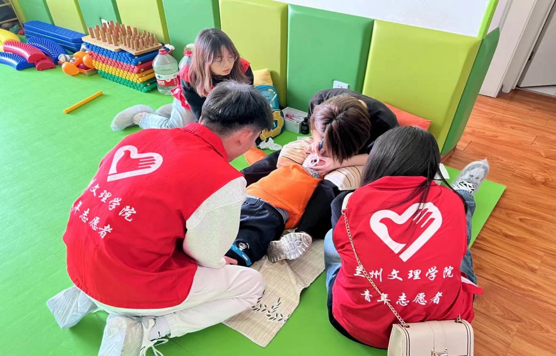 活动期间志愿者在特教老师的指导和帮助下,为儿童进行相关语言和行为的康复训练,指导儿童完成康复训练作业,志愿者积极热情的为孩子们加油、鼓劲,用他们的热情与耐心温暖每一个孩子幼小的心灵。