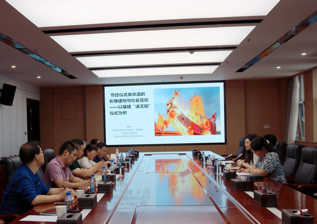 7月13日,伟德BET官方网站邀请《中国非物质文化遗产》副主编、中国艺术研究院高舒副研究员为公司非遗专业教师作题为《节日仪式类非物质文化遗产项目的影像建档与社会互动》的讲座,伟德BET官方网站经理叶淑媛教授主持。