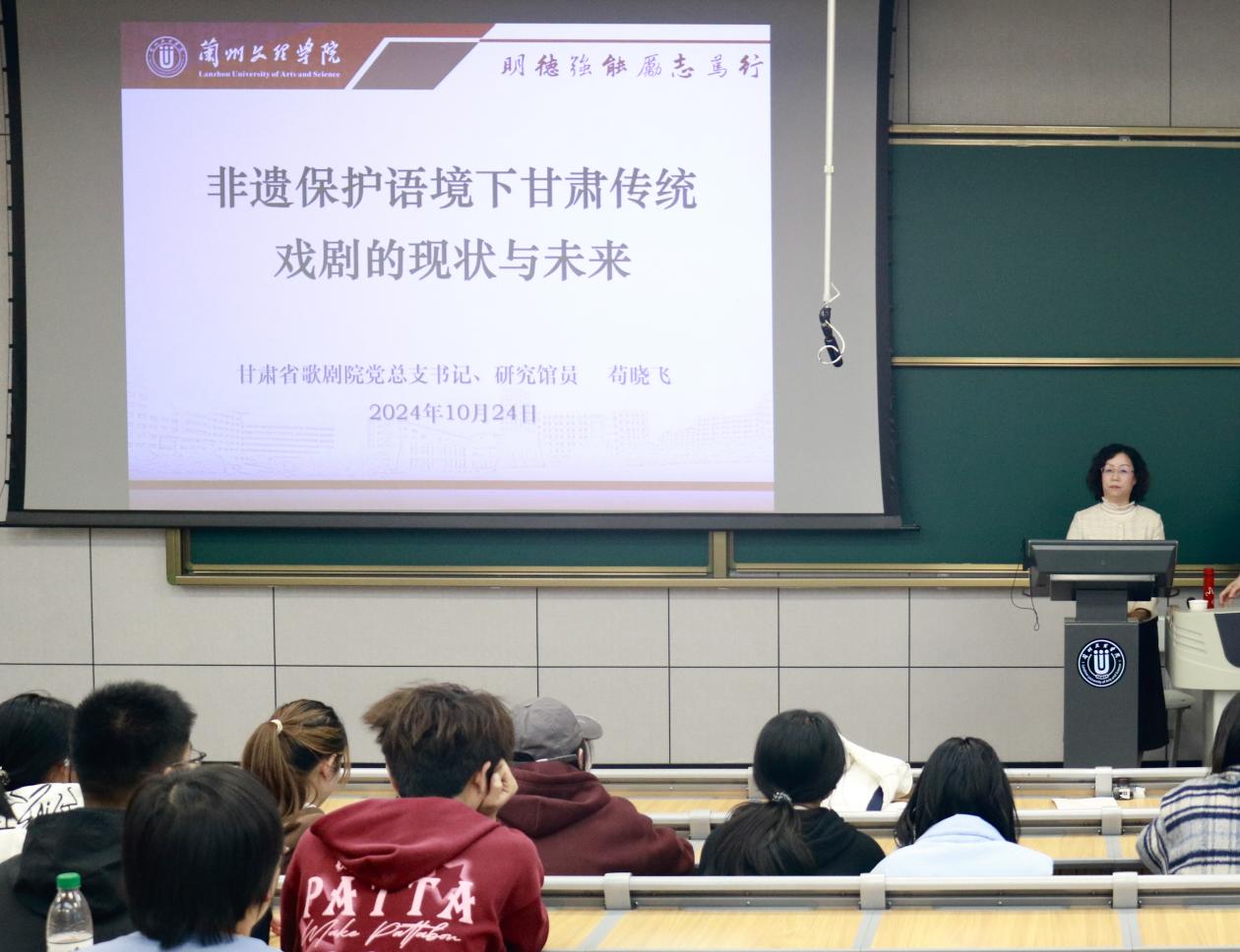 10月24日下午,甘肃省歌剧公司党总支书记、研究馆员苟晓飞于文昌楼203带来了题为《非遗保护语境下甘肃传统戏剧的现状与未来》的讲座,讲座由伟德BET官方网站经理叶淑媛主持,伟德BET官方网站师生共150余人参加。