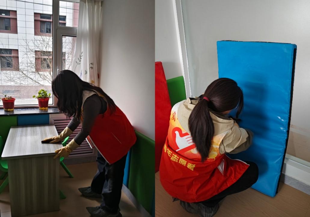 活动中,志愿者们践行雷锋精神,在儿童康复中心开展清洁服务工作,擦拭门窗、整理玩具、打扫地面……哪怕是角落的灰尘,也不放过,他们不怕脏、不怕累,努力给特教的孩子们创造一个整洁、明亮的环境。